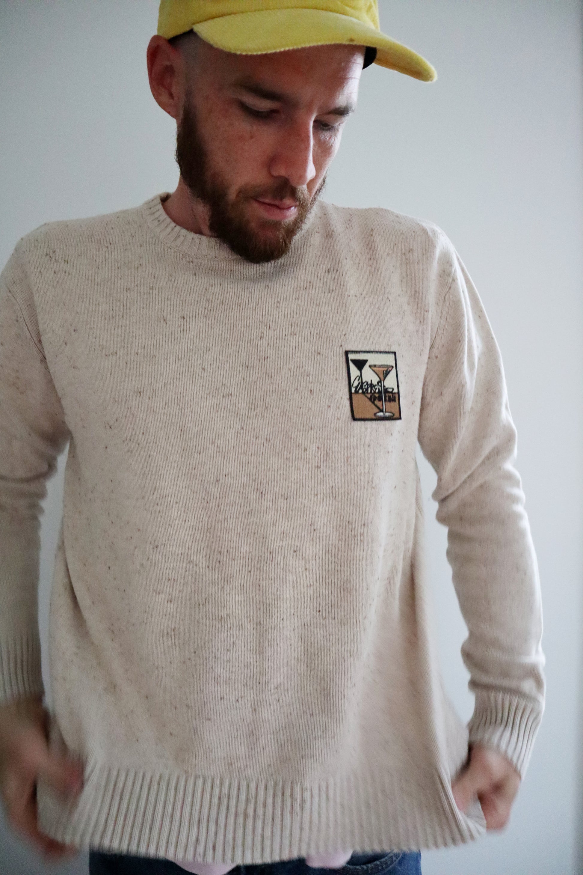 Drink good, look good with this Espresso Martini jumper. Light enough to wear for most of the year, this oatmeal and brown fleck op shop find complements your favourite cocktail just right. Featuring the Dominic Byrne patch from the 'Happy Hour' series', rep the bev you can't resist!