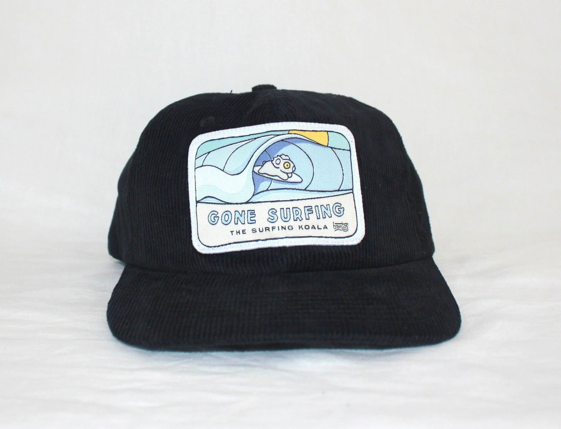 Brentos created the 'Surfing Koala' character roughly three years ago and its purpose was to delight the viewer, but also to send a subtle message about the plight of Australia's Koala population who've been under threat from land clearing and bushfires. By combining a national icon, a Koala, with the sport of surfing, an iconic Australian sport and pastime, Brent wanted to deliver this message in a fun, accessible manner that aims to softly nudge more people to see the importance of protecting these animals. Since the conception of this little character, it has grown and evolved over the years and it looks so at home here on a Fry Baby hat.