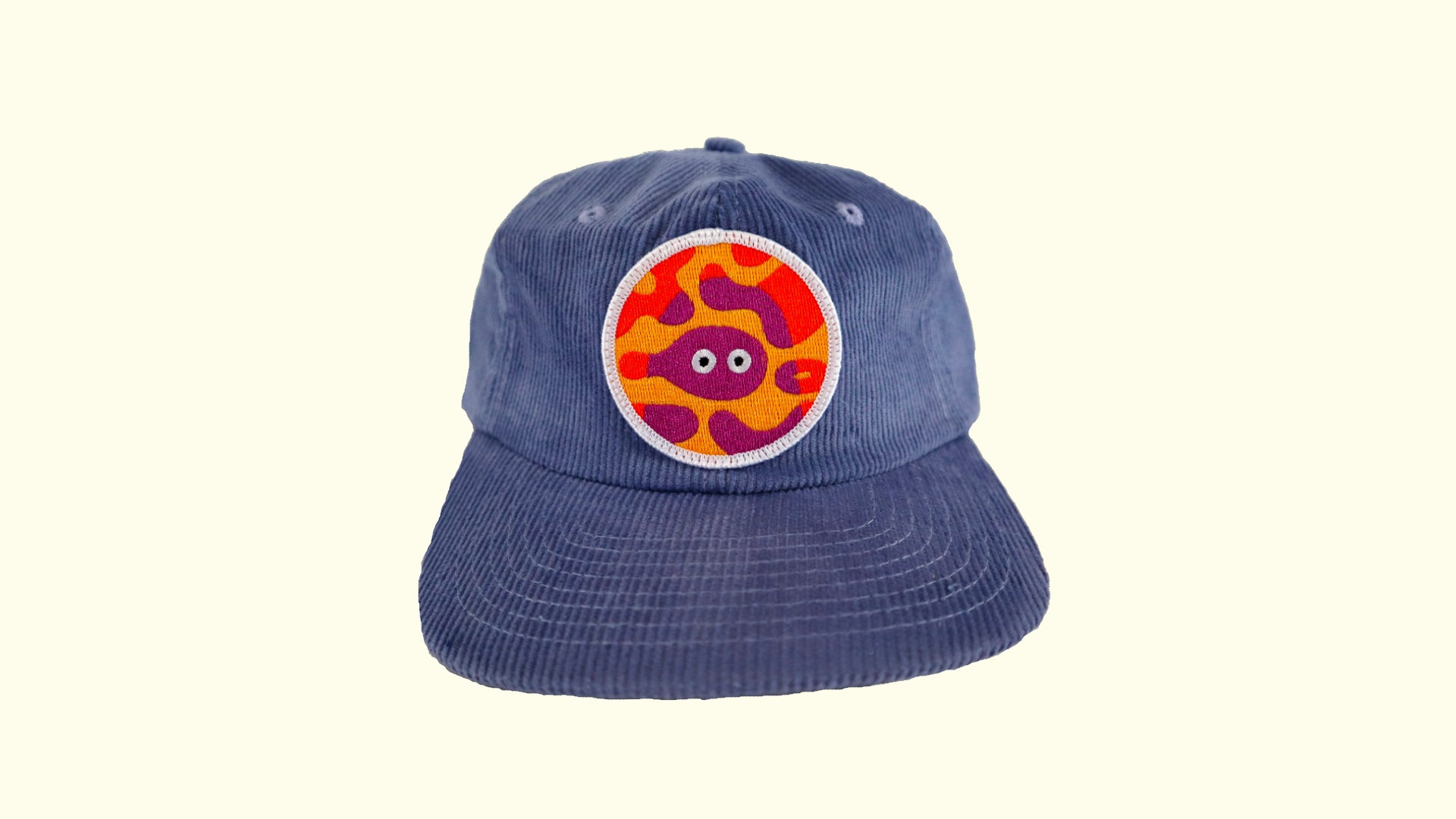 It's time to welcome a brand new colour to the Fry Baby collection and this limited edition blueberry cord is adorned by a Zac Fay creature looking right at ya! Zac says that 'Muddled' is open to interpretation and that the feeling the abstract image gives you is entirely up to you... Are you scared, shocked, intrigued, in love or all of the above? Whatever your reaction, a blob on a bloob never looked so cool!