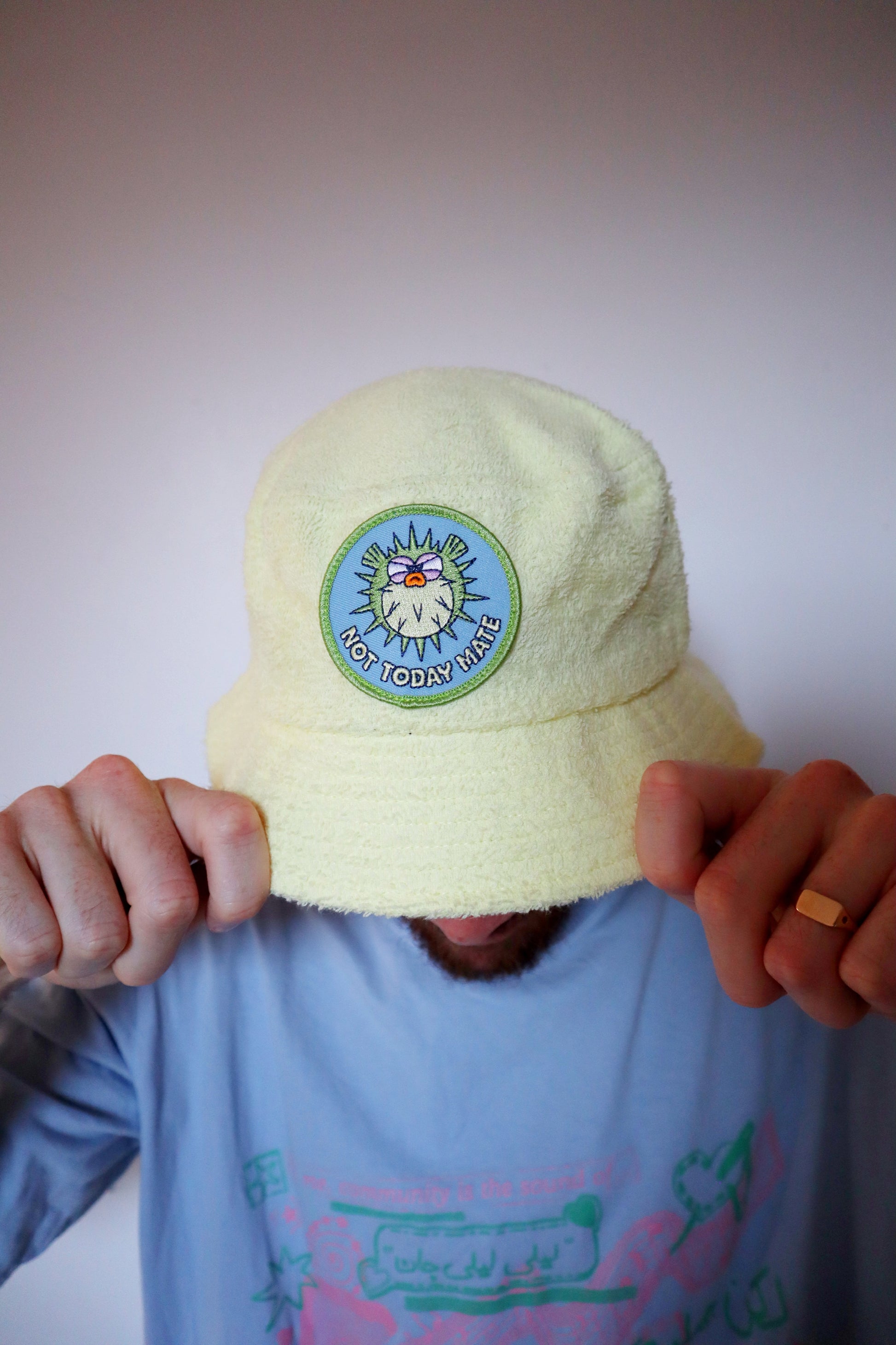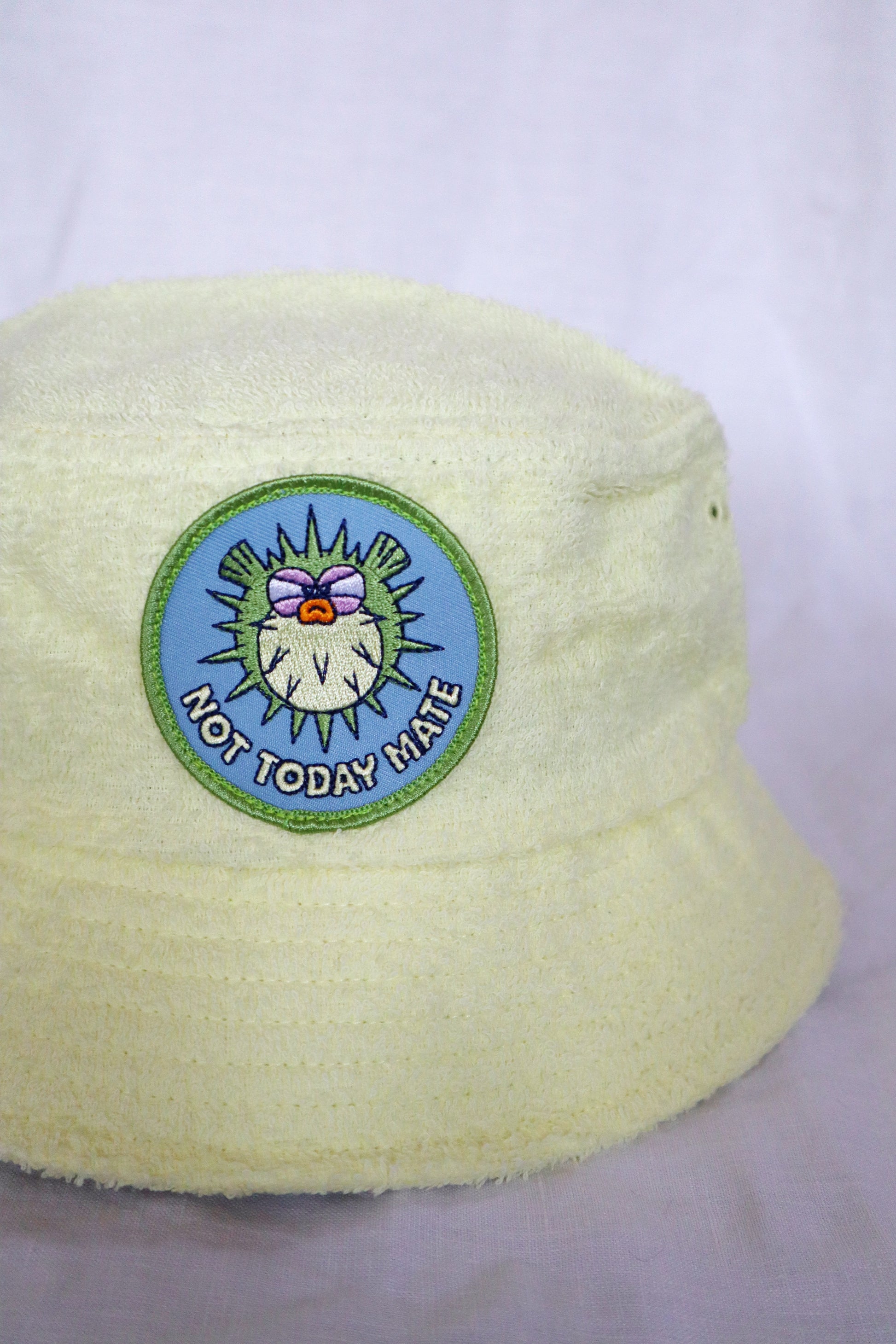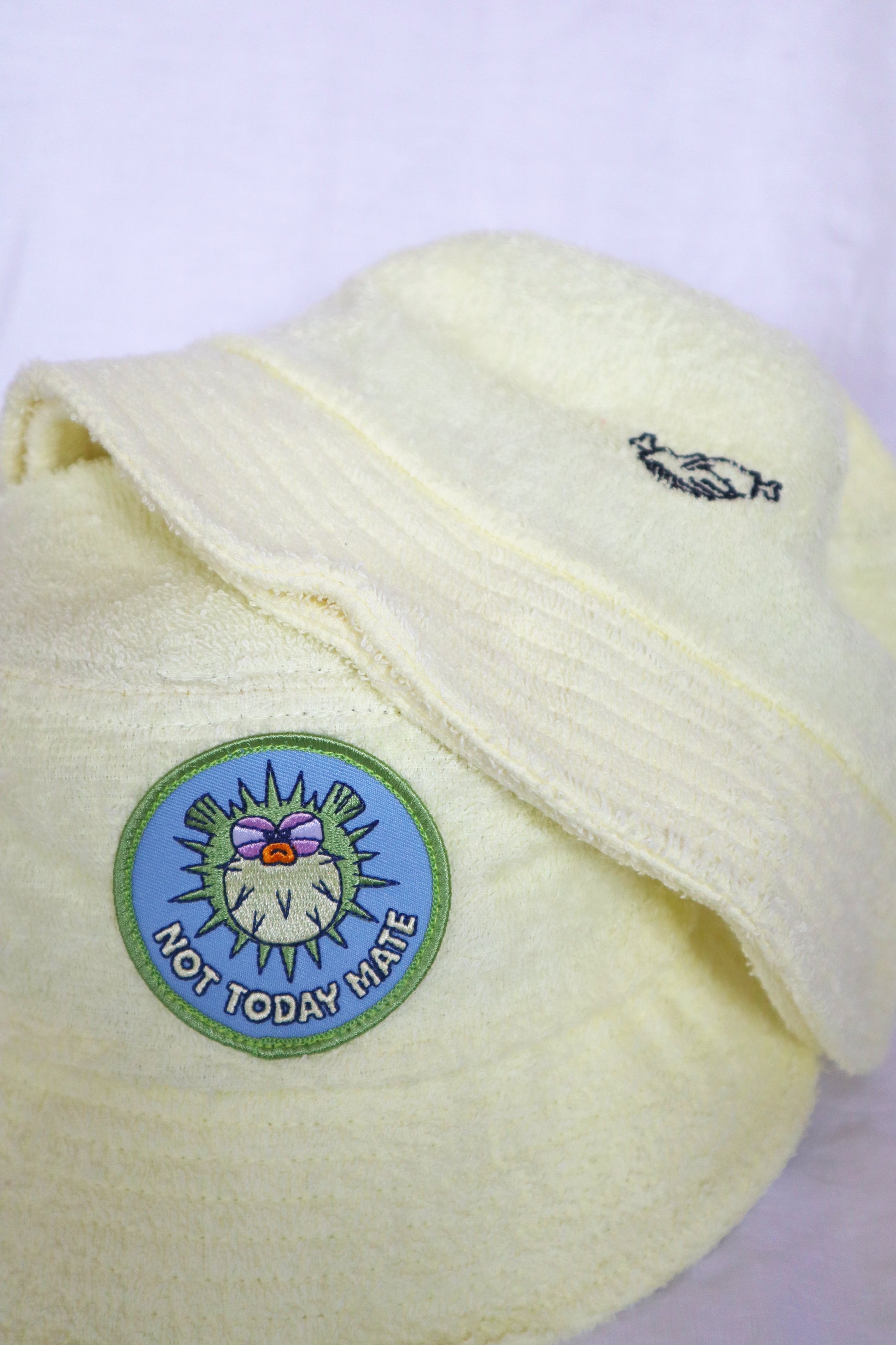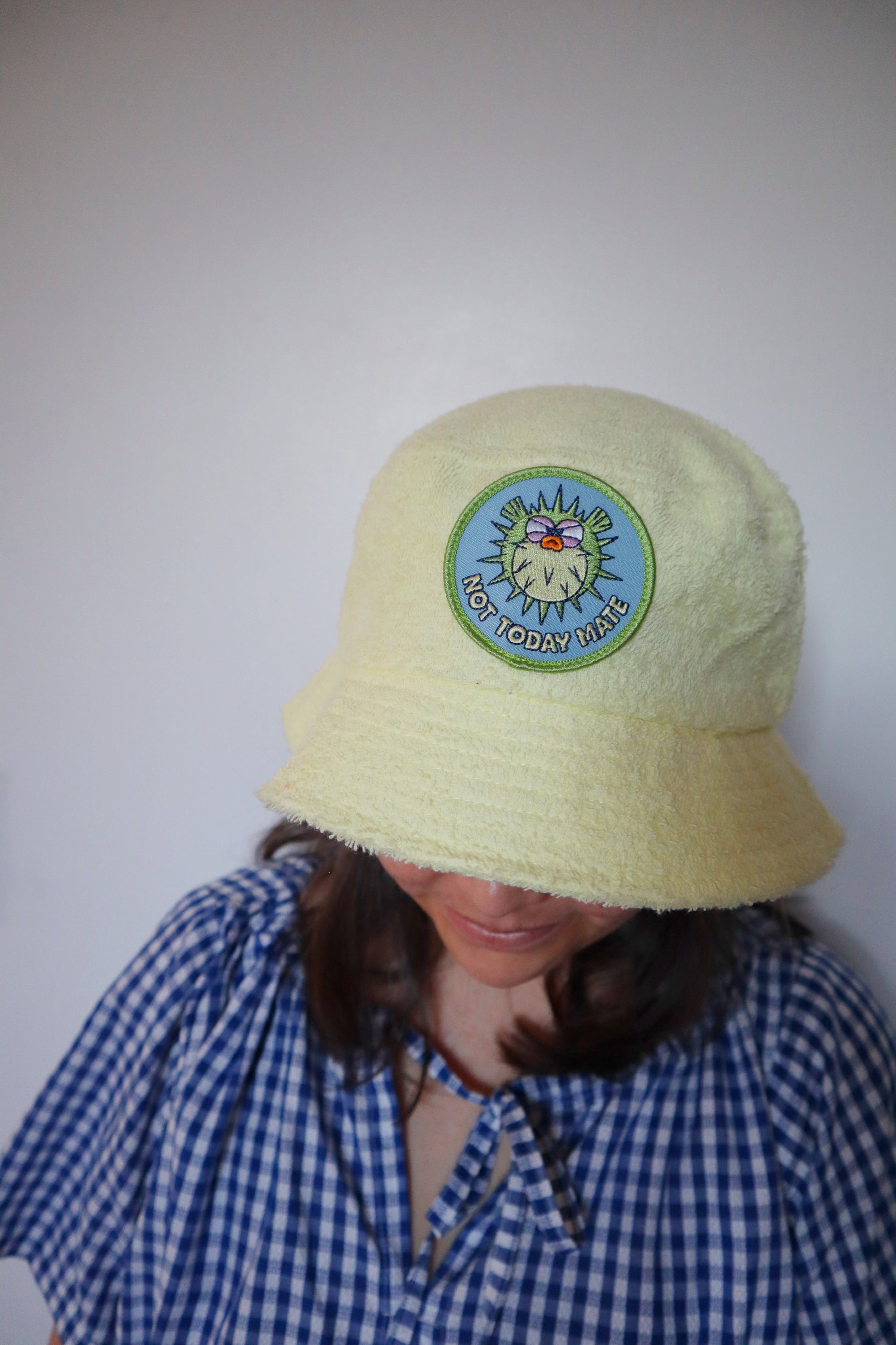 Your terry towelling Summer bucket hat is sorted. A limoncello coloured soft feel sun blocker featuring a take no crap puffer fish - what's not to love!