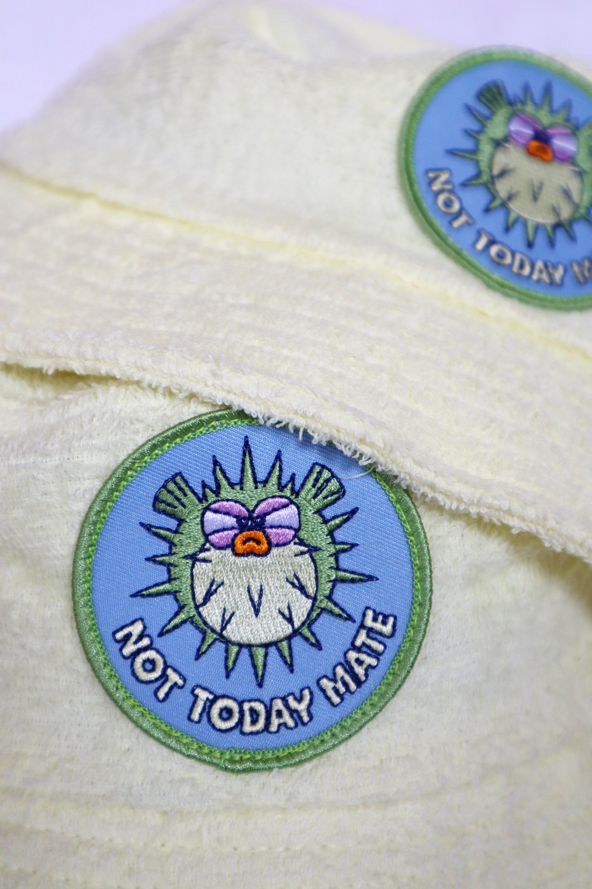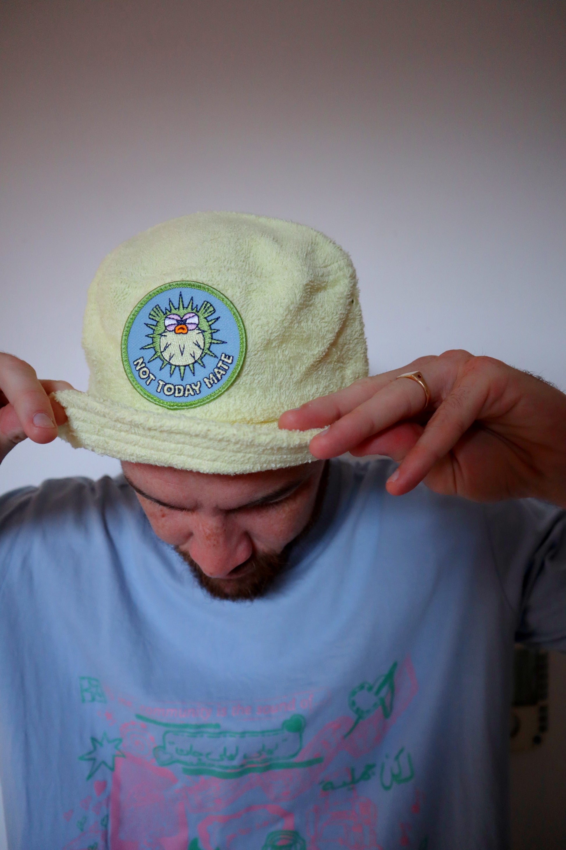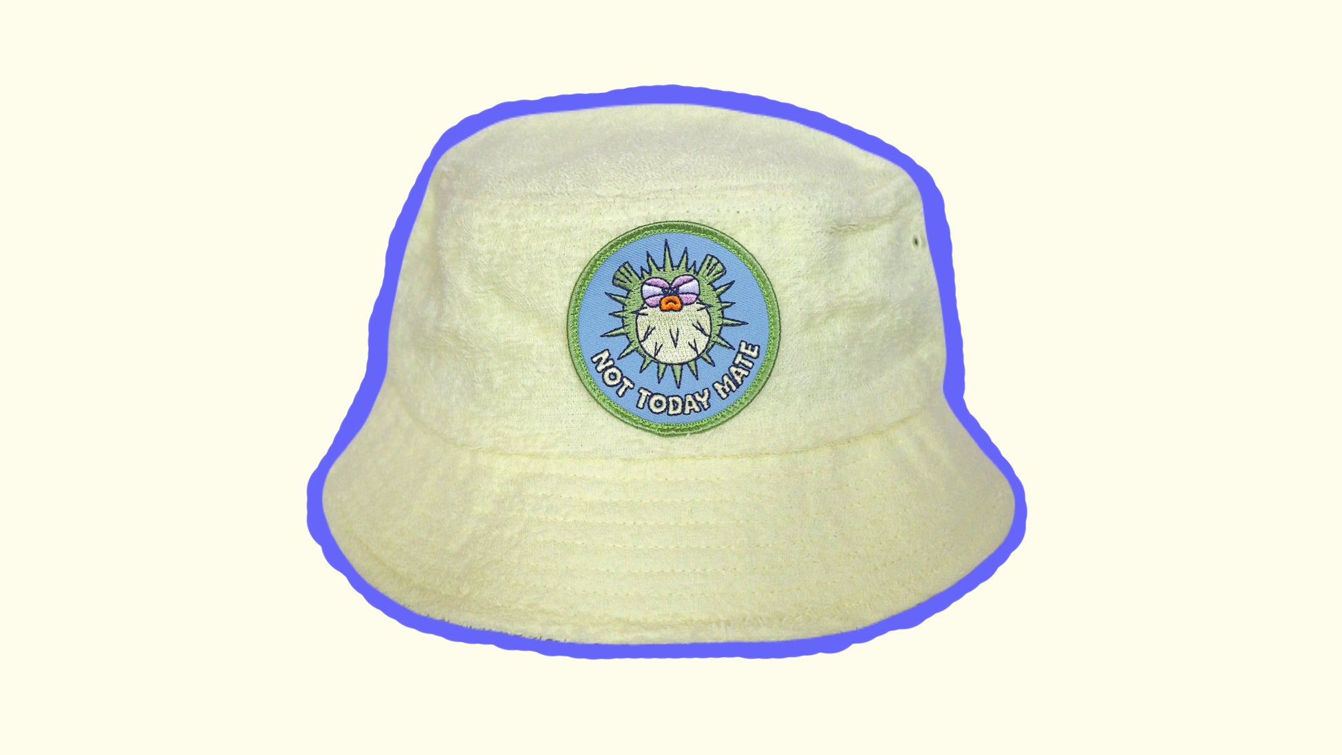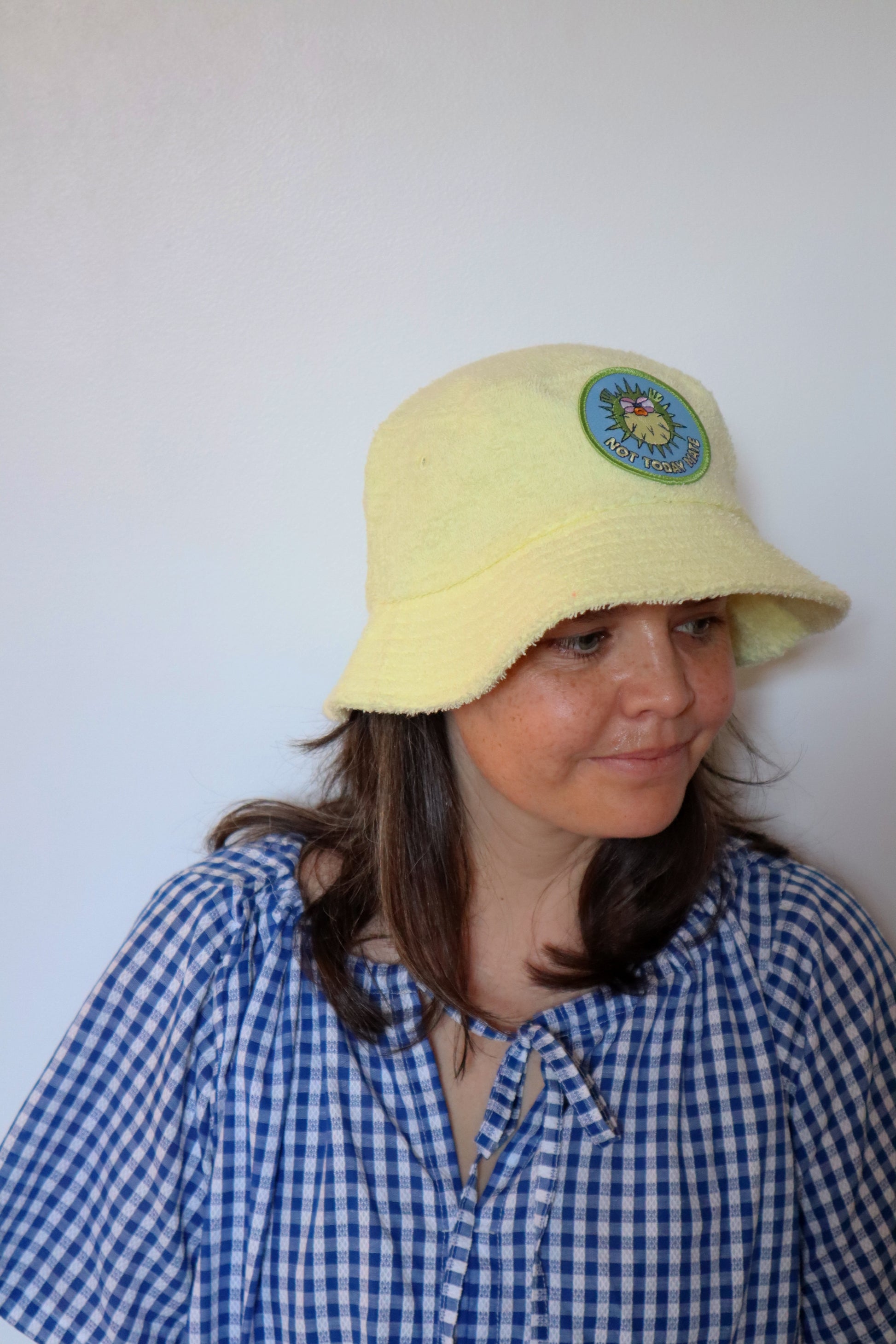 Your terry towelling Summer bucket hat is sorted. A limoncello coloured soft feel sun blocker featuring a take no crap puffer fish - what's not to love!