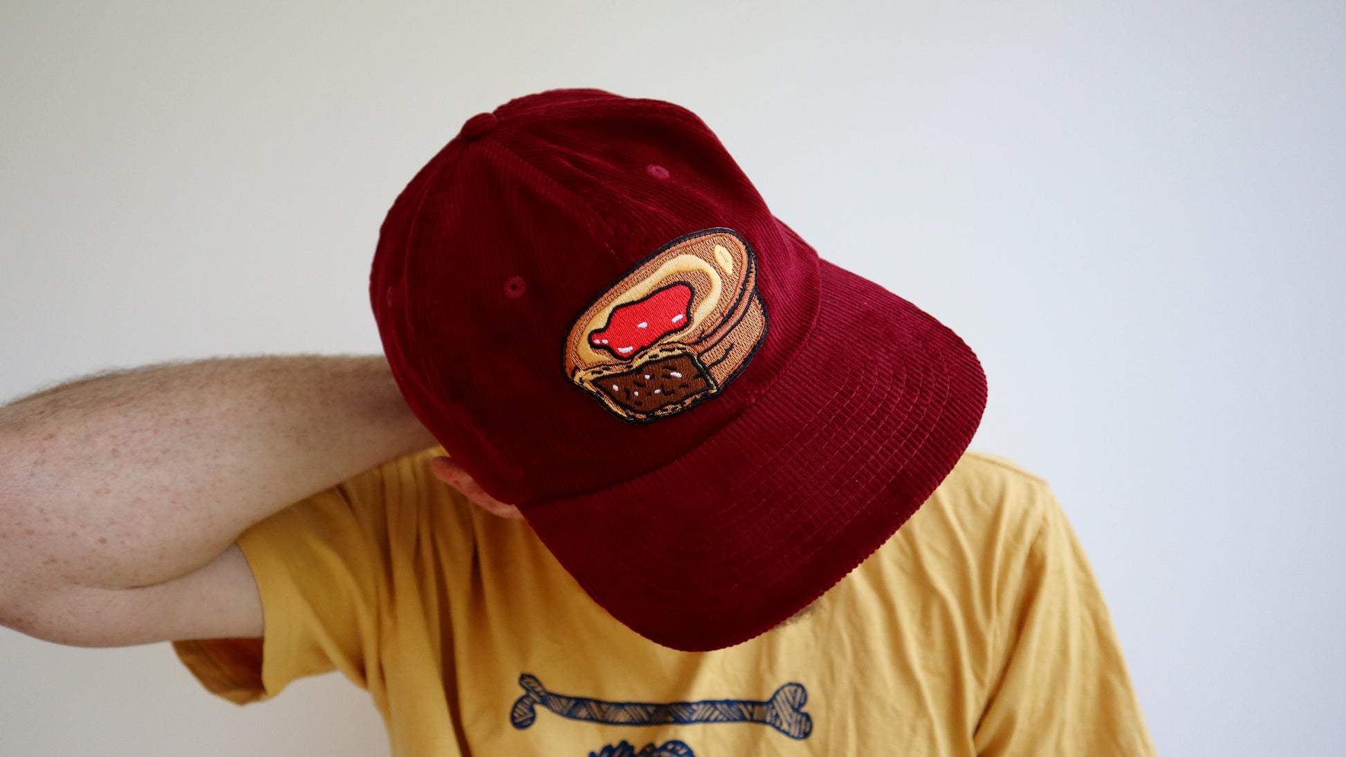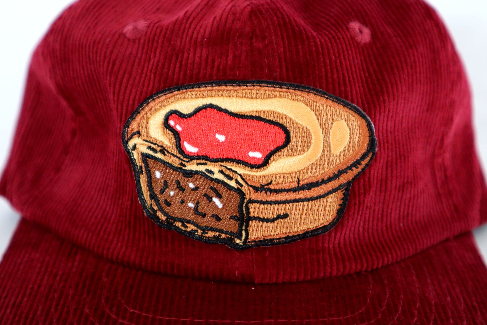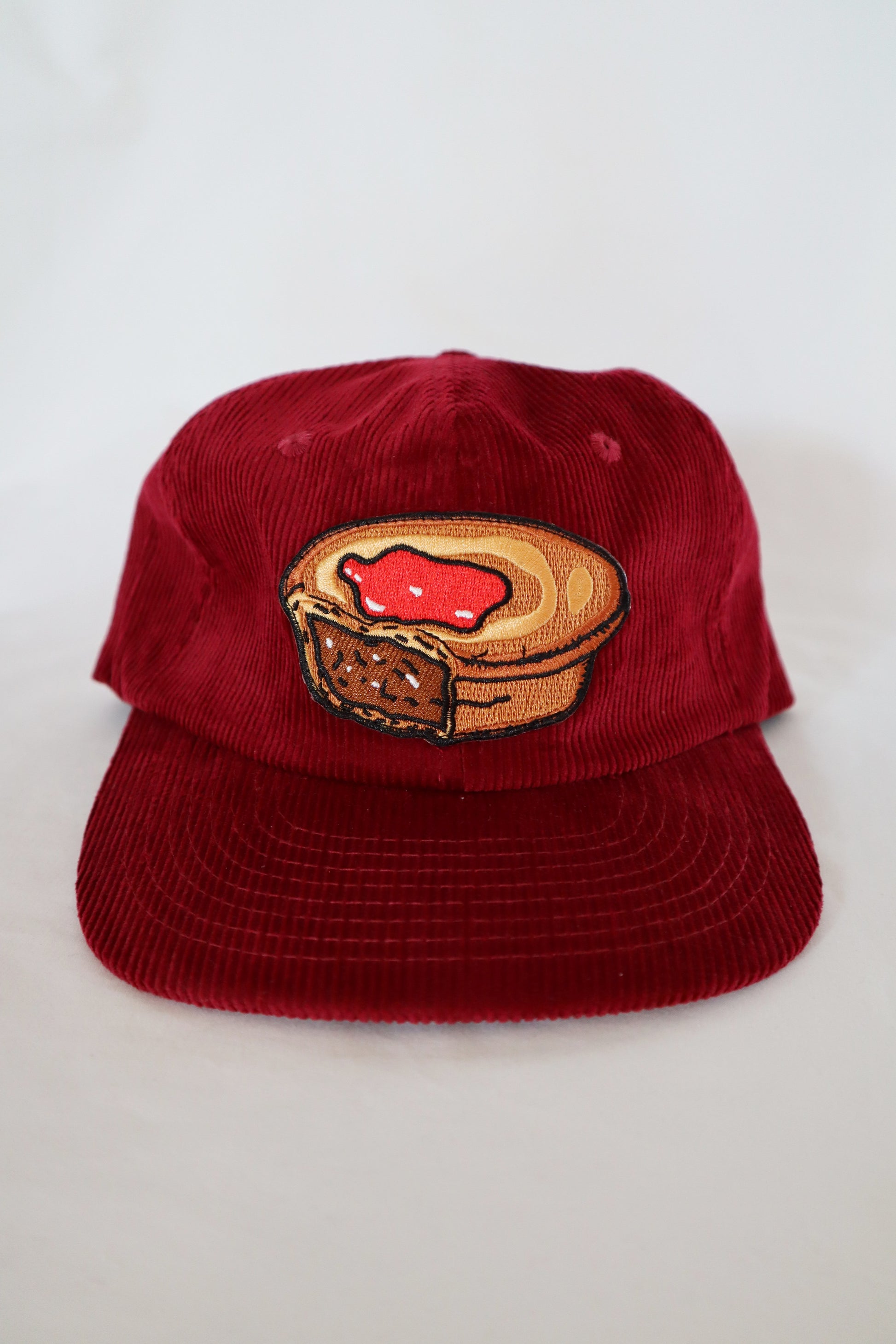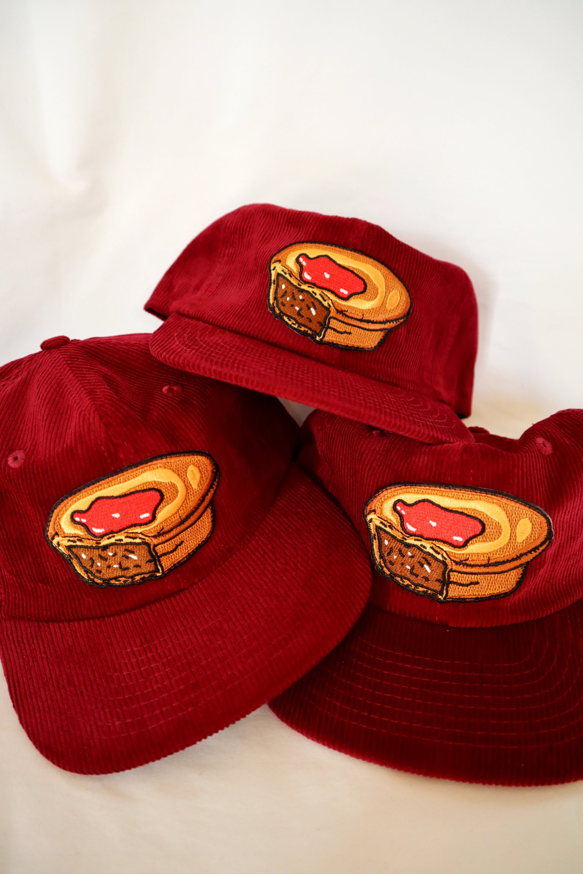 Fry Baby and Billie Justice Thomson served up a negroni hat in 2021, now it's time for some good quality food with your bev. Introducing the Pie hat, the tastiest lid you might have ever seen. Billie's pie illustration is a classic that she used to print on greeting cards, but this embroidered patch on the burgundy coloured corduroy hat is a next level celebration of the humble pie. We've also done a 'Pizza' hat with Billie so whether you're a pie head or a pizza fan, or both, there's a BJT Fry Baby for you! Don't wait too long either, the Negroni was one of the quickest ever to sell out and these are best served piping hot.