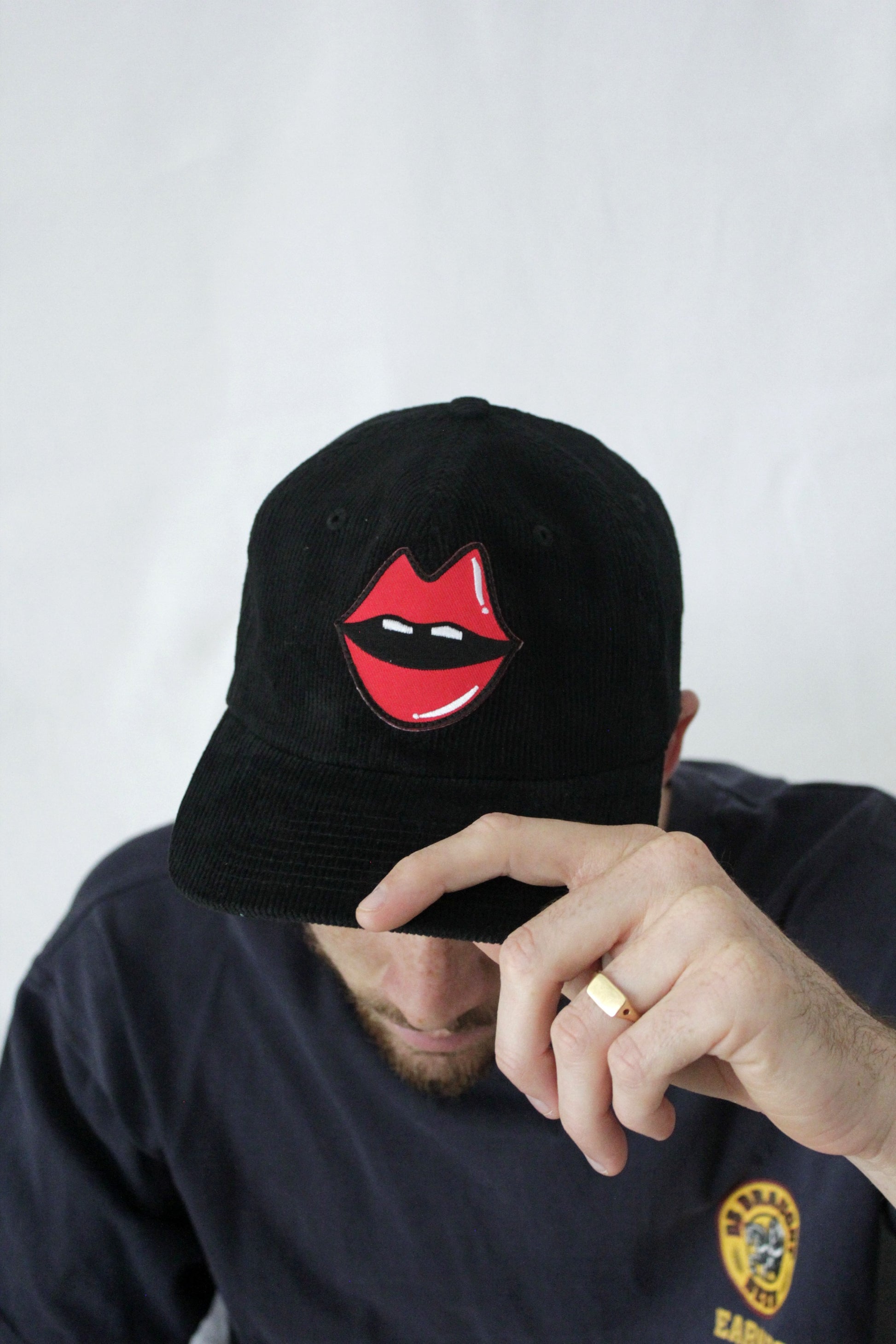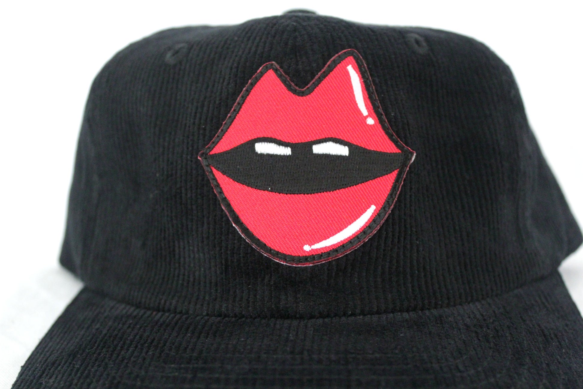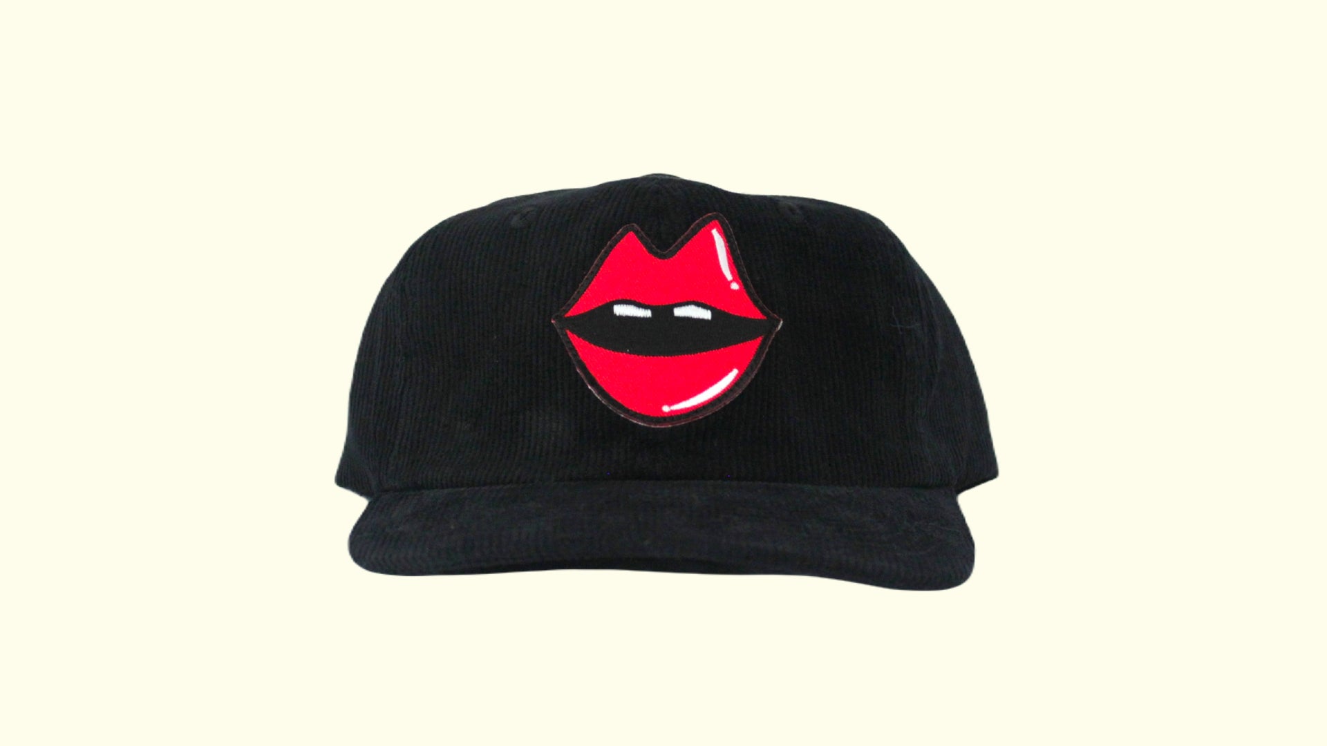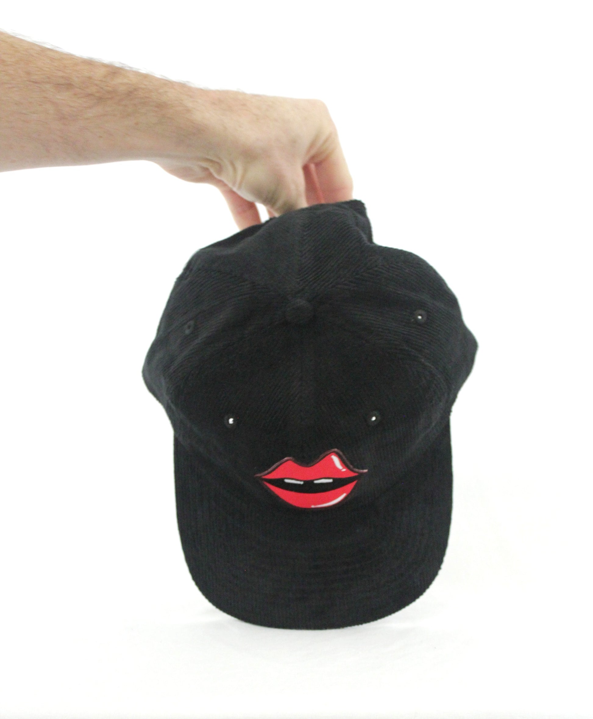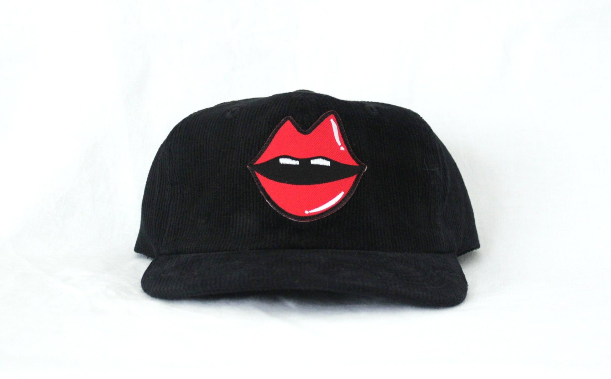 It started with a kiss... Sitting boldly on a crisp black cord are Kimberly's lips that jump off the hat. Can you resist the lure of the lips?