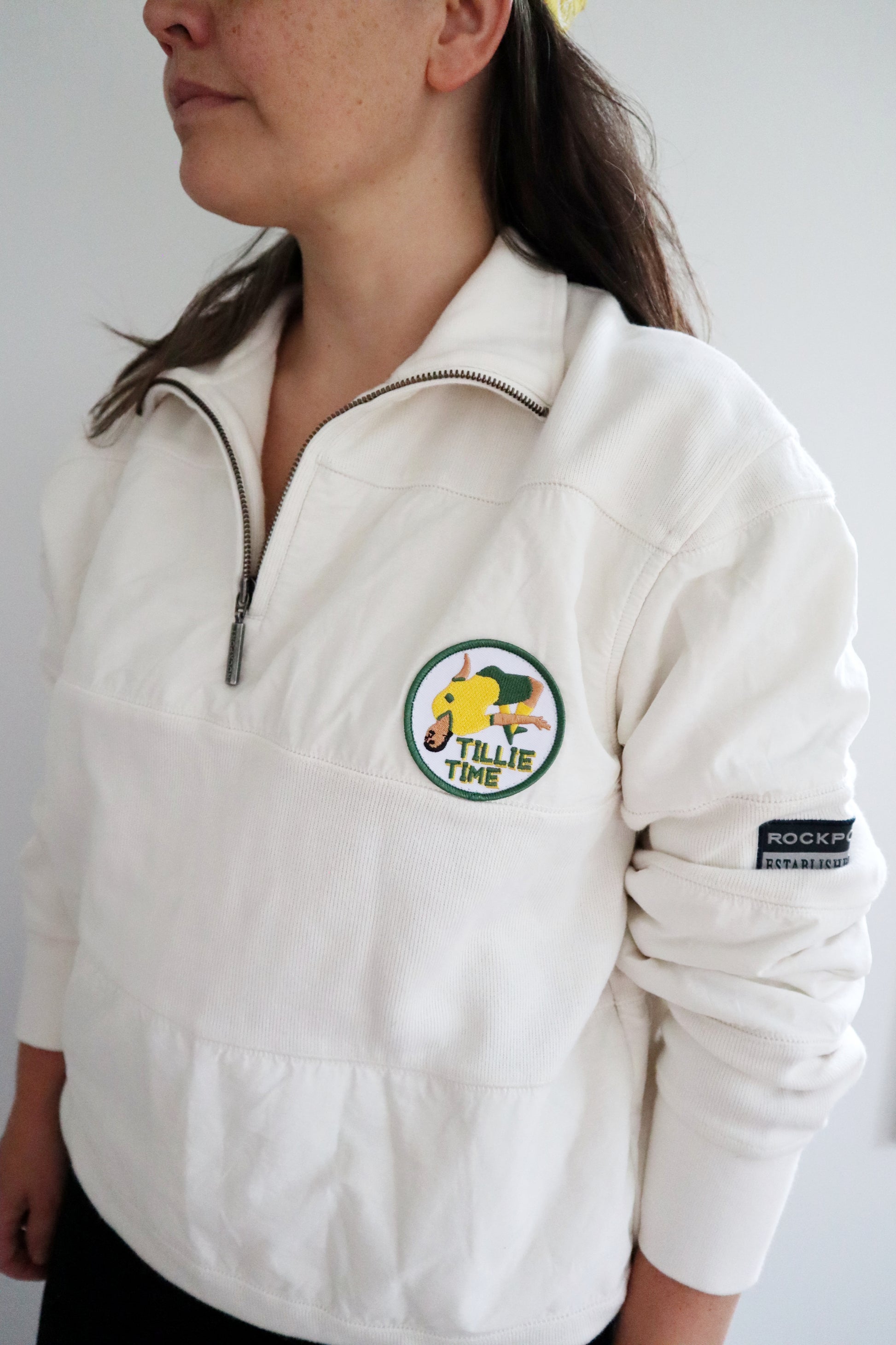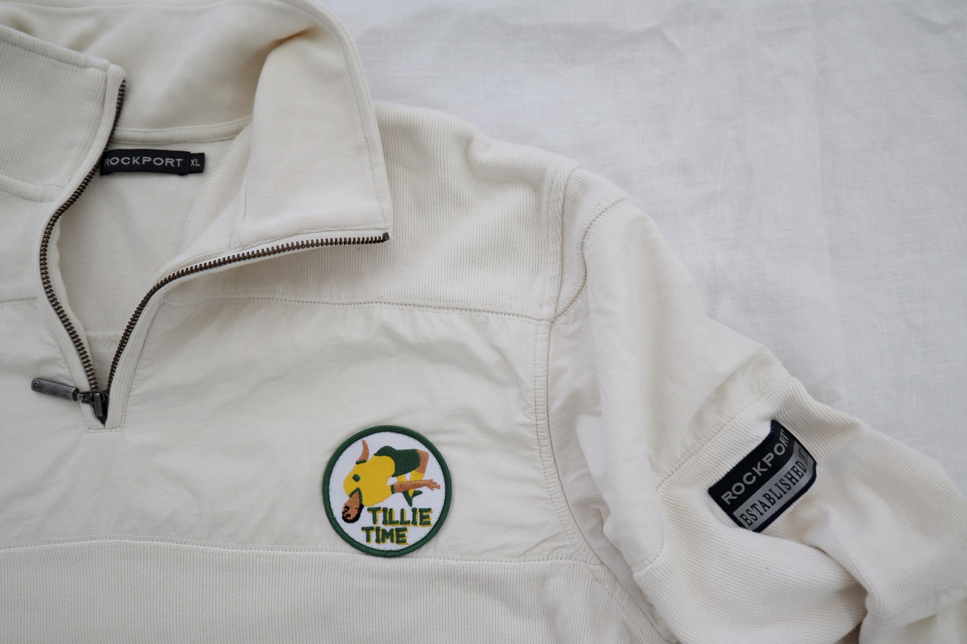 The greatest time of the year got a hat to match the Matildas greatness and now you can rock the patch from the lid on this one off op shop find. The vintage Rockport sweater with a zip up top is a perfect match for the Tillie Time patch. A true one of a kind way to support the might Tillies!